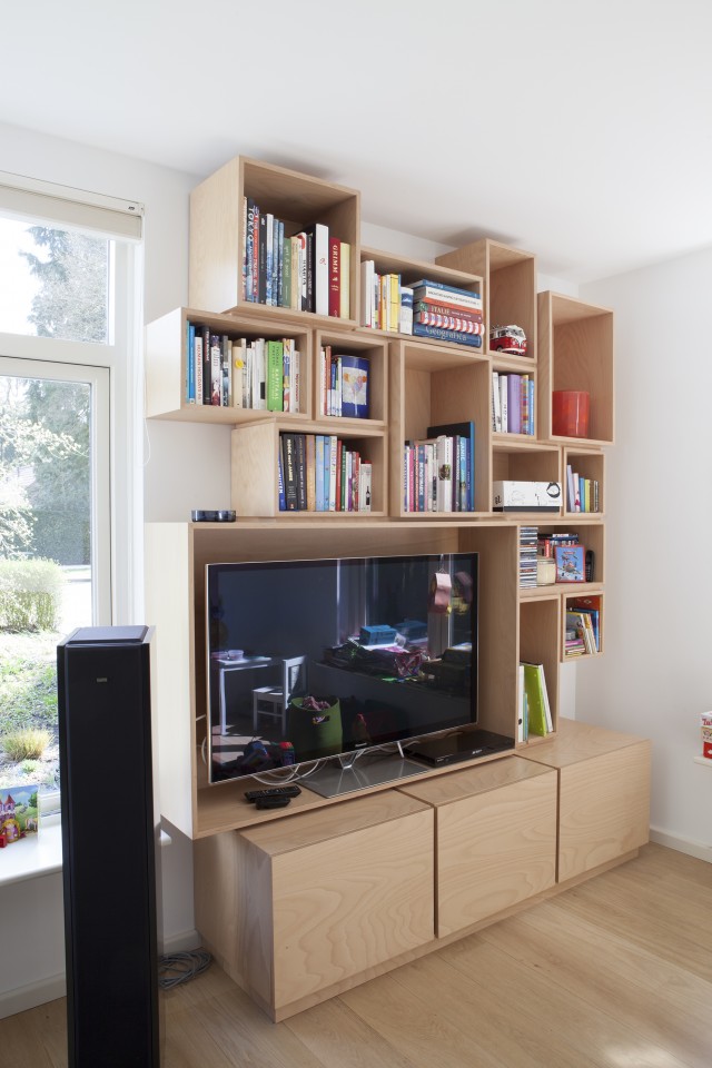De vakken geven ordening, het berken multiplex vormt een serene achtergrond. Zo wordt een verloren hoek een ruimte vol ontdekkingen!